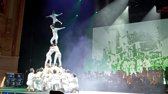 Un dels grans moments de la gala del 75è aniversari dels Castellers de Vilafranca, celebrada el passat dissabte al Gran Teatre del Liceu de Barcelona, va ser quan un grup de membres de la colla va protagonitzar una torreta de 4 desplegada, una de les construccions més típiques de les Muixerangues. Juntament amb l’impecable interpretació musical de l’Orquestra de Músiques Tradicionals de Catalunya, va esdevenir una de les accions més solemnes i aplaudides de la nit.
